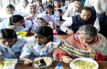 সিলেটে ‘মিড ডে মিলের’ খাবার খেলেন শিক্ষামন্ত্রী ও উপমন্ত্রী