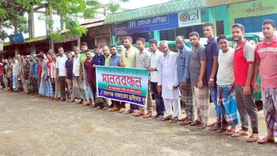 সড়ক সংস্কারের দাবিতে বিশ্বনাথে মানববন্ধন