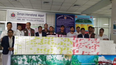 ওসমানী বিমানবন্দরে ৮শ কার্টন বিদেশী সিগারেট জব্দ