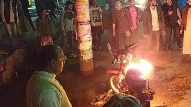 অল্পের জন্য বেঁচে গেলেন বদর উদ্দিন : চলন্ত মোটরসাইকেলে আগুন