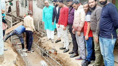 নগরীর খাসদবীরে ১ম গলীর কাজ পরিদর্শনে কাউন্সিলর রেজওয়ান আহমদ