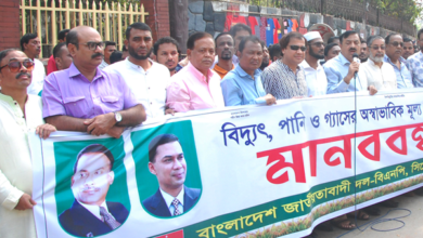 বিদ্যুত ও পানির মূল্য বৃদ্ধির প্রতিবাদে সিলেট বিএনপির মানববন্ধন