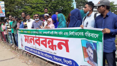 শিশু রবিউল ও রায়হান হত্যাকাণ্ডের প্রতিবাদে মানববন্ধন