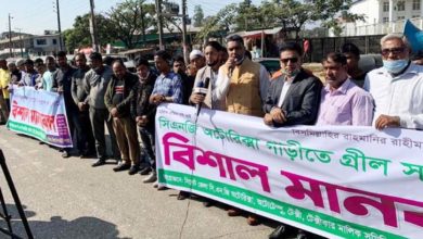 অটোরিকশায় গ্রীল লাগানোর সিদ্ধান্ত বাতিলের দাবিতে মানববন্ধন