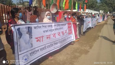 ভাস্কর্য ভাঙচুরের প্রতিবাদে সিলেটের শিক্ষকদের মানববন্ধন