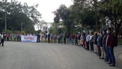 বঙ্গবন্ধুর ভাস্কর্য ভাংচুরের প্রতিবাদে শাবিতে মানববন্ধন