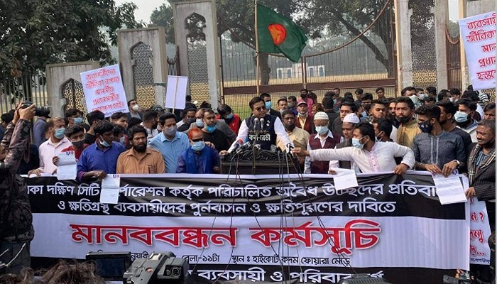 ডিএসসিসি কর্তৃক অবৈধ দোকান উচ্ছেদে ক্ষতিপূরণ ও পুর্নবাসনের দাবিতে ক্ষতিগ্রস্ত ব্যবসায়ী ও তাদের পরিবারের সদস্যদের মানববন্ধনে অংশ নিয়ে এই মন্তব্য করেন সাঈদ খোকন। ৯ জানুয়ারি, শনিবার সকালে হাইকোর্ট এলাকায় এই মানববন্ধনটি অনুষ্ঠিত হয়।