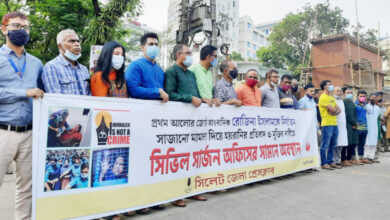 রোজিনার মুক্তি ও নির্যাতনকারীদের শাস্তির দাবিতে সিলেটজুড়ে মানববন্ধন