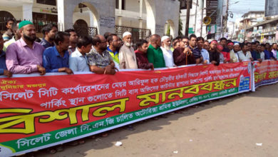 বাস সার্ভিসের কাউন্টার নির্মাণ সিদ্ধান্তের প্রতিবাদে মেয়র আরিফের বিরুদ্ধে মানববন্ধন