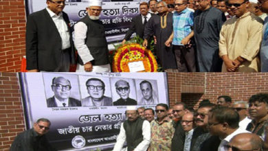 জাতির জনক ও চার নেতার প্রতিকৃতিতে আ’লীগের শ্রদ্ধা