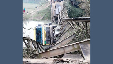 সুনামগঞ্জে পাথর বোঝাই ট্রাক নিয়ে ভেঙে পড়লো ব্রিজ : যোগাযোগ বিচ্ছিন্ন