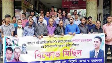 তারেক রহমানের বিরুদ্ধে গ্রেফতারী পরোয়ানার প্রতিবাদে সিলেটে বিক্ষোভ
