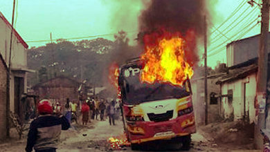 হঠাৎ চাকা ফেটে চলন্ত বাসে আগুন : স্বামী-স্ত্রীর অবস্থা আশঙ্কাজনক